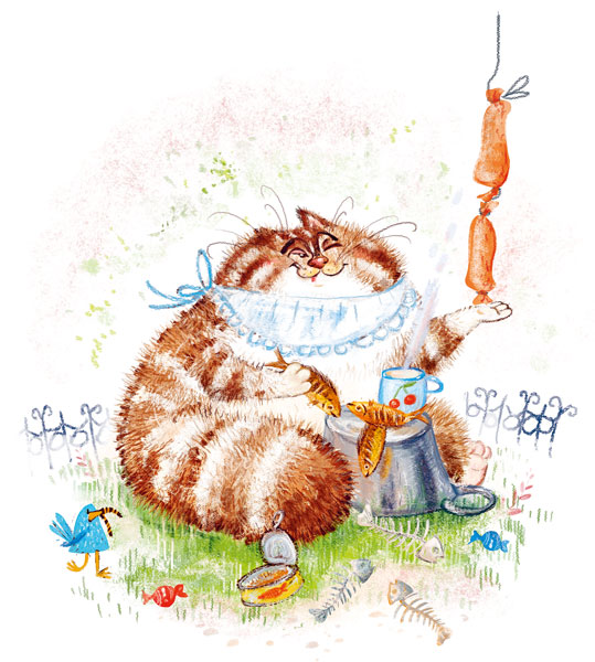 Поспорил с ней известный толстяк Кот на литр молока. Чего ж ему не спорить? На всём готовом живёт. Его Хозяйка кормит с ложечки. Возможно, и родился с серебряной ложечкой во рту.