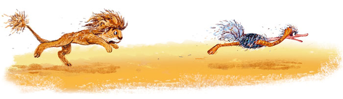 Страус уже чувствовал, как топорщатся перья у него позади от мощного дыхания настигающего Льва. А может, ему так казалось.