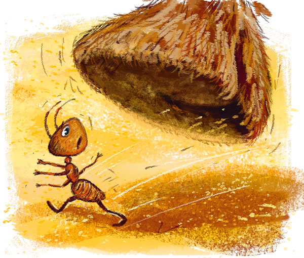 Опять случайно оказался Муравей на пути Верблюда. Мощные ноги великана, одна за другой, осторожно перешагнули через него.