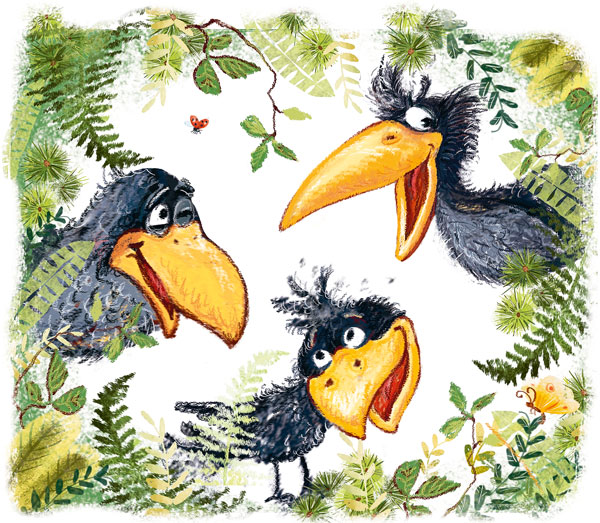 Вот дела! Птицам в роще житья не стало от трёх ворон, задир-забияк.
