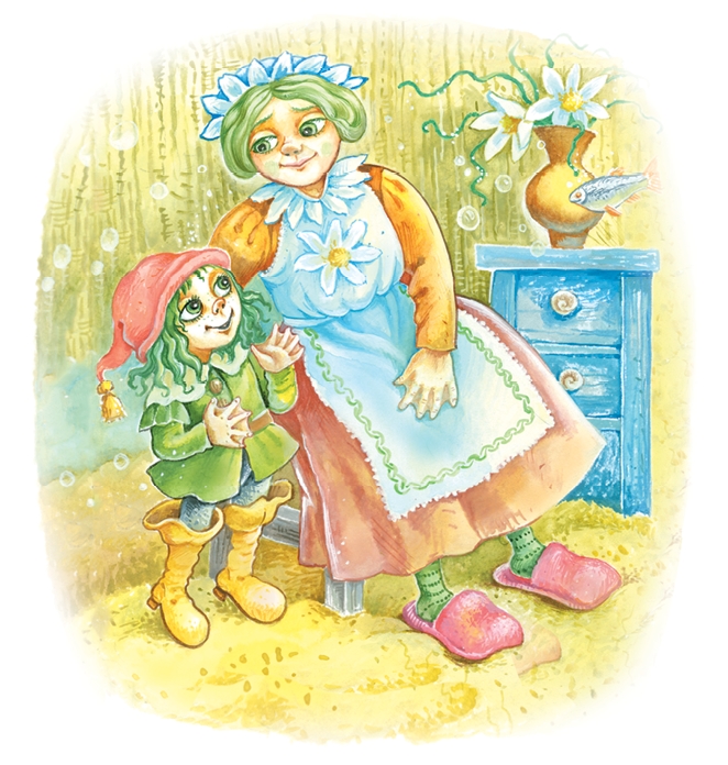 – Посмотри на эту шапку! – кричал он матери. – Разве она не подходит к его зелёным волосам? А сапоги! Я тачал их собственноручно, они сделаны из самой дорогой кожи, какую я только мог себе позволить!