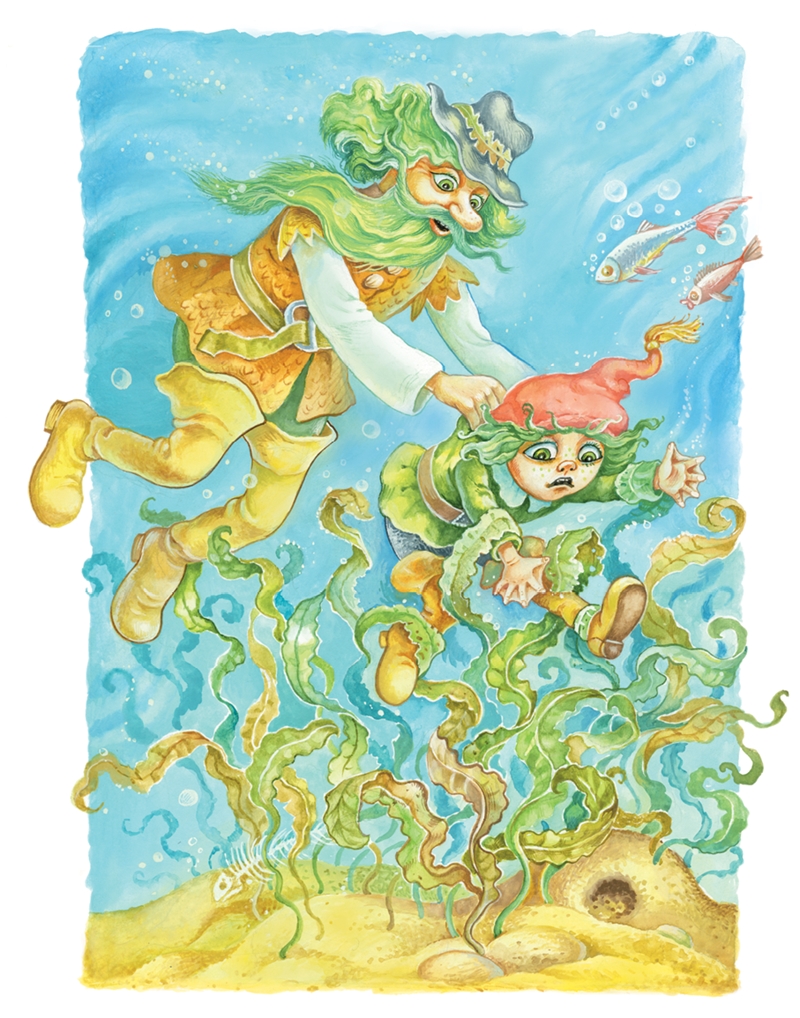 Когда водяной наконец увидел, что мальчик действительно не в состоянии выбраться сам, он недолго думая схватил его за шиворот и – раз! – выдернул из западни.