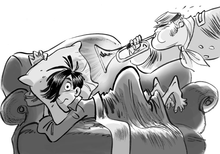 Когда горн смолк, юноша с облегчением вздохнул и почесал затылок, вспоминая, что делал ночью и зачем поставил будильник на такое время.