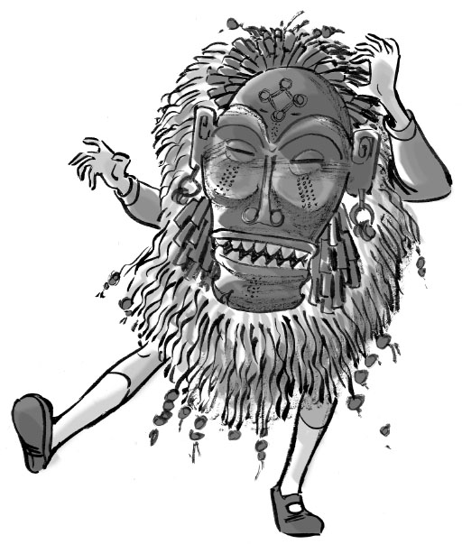 Внезапно что-то с грохотом упало на пол. Оказалось, это Ватсон, расхаживая по залу, опрокинул огромную маску из эбенового дерева, найденную в Африке Фредериком Мистери. Дядя Фред, как его называла мама Агаты, был превосходным танцором. Однажды он решил навсегда оставить сцену и поселился в племени африканских туземцев, чтобы разучить их ритуальные танцы. Фредерик вернулся домой на корабле, гружённом статуэтками, идолами, копьями, щитами и много чем ещё. Самым ценным предметом из всех была огромная, жуткая на вид маска (её-то и толкнул Ватсон), изображавшая разъярённого демона.
