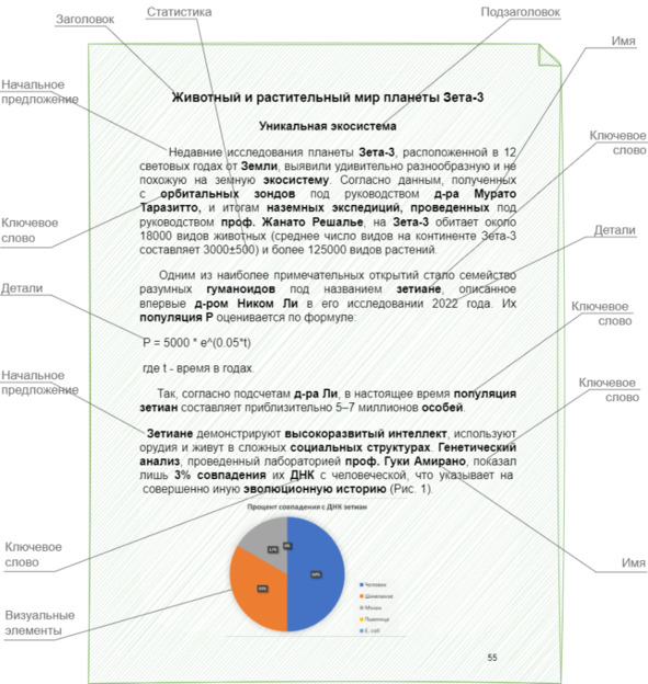Рисунок 3 – Элементы текста для эффективного скимминга и примеры конкретной информации.