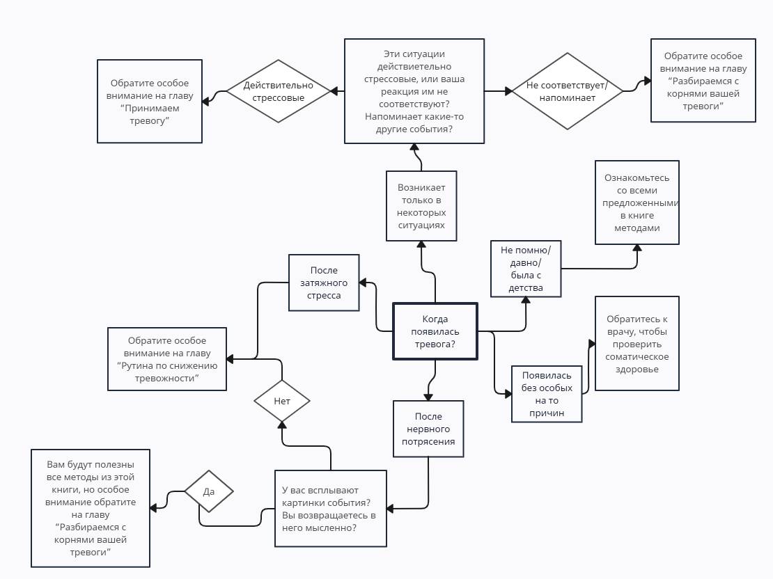 Вместе с тем, отдельные практики, такие как практики расслабления и навыки осознанности вы можете применять прямо во время первого прочтения. Их можно найти в главе «Рутина по снижению тревожности».