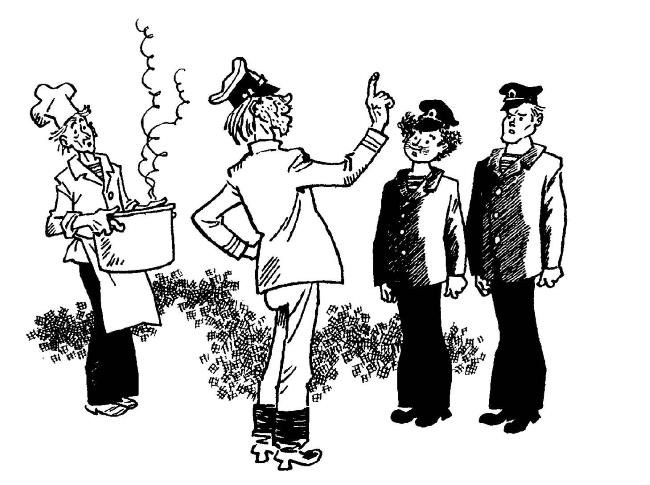 Но сейчас кок только озадаченно мигал. Надвигался шторм совсем иного рода! Над Супчиком, над всей командой прогремели слова: «Надо браться за дело!»
