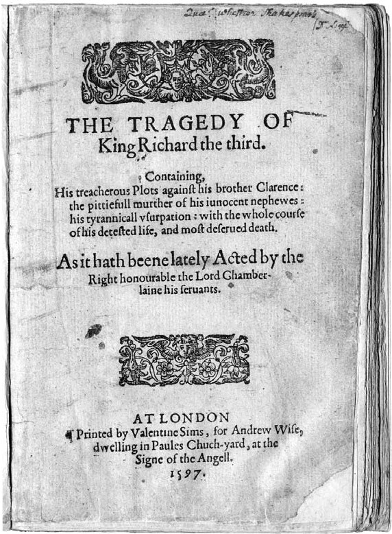Титульный лист издания трагедии Шекспира «Король Ричард Третий» (1597)