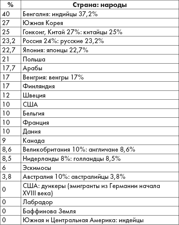Третья группа крови (среднее количество в популяции, в процентах)
