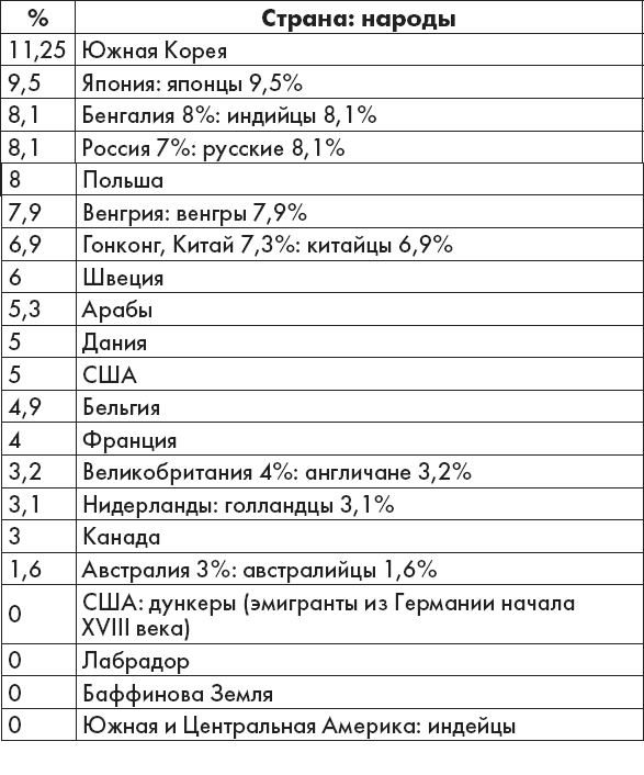 Четвертая группа крови (среднее количество в популяции, в процентах)
