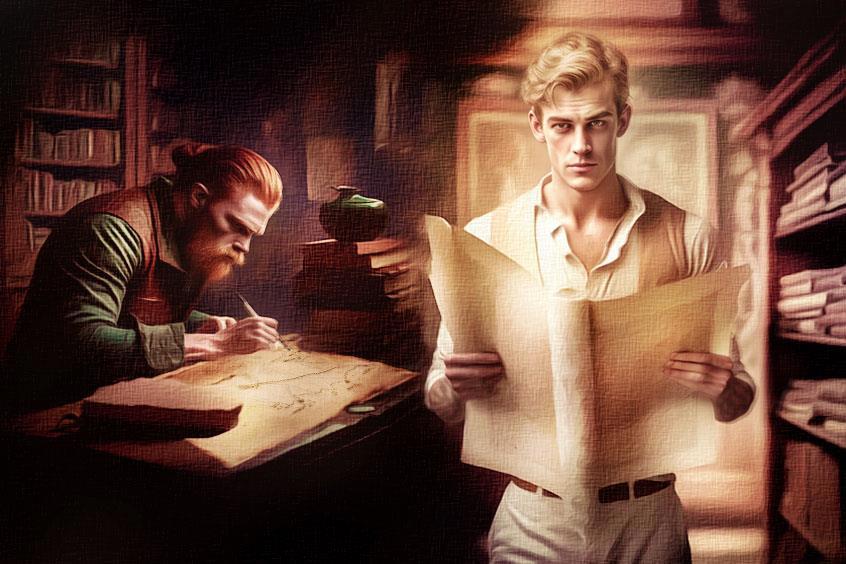 Маленькая квартирка была сплошь забросана набросками и писчими принадлежностями. В дни вдохновенной работы над рисованием карт Илмарт забывал обо всём на свете, полностью погружаясь в священнодействие. Вот и сейчас, запустив Дерека и неопределённым взмахом руки обозначив, что чай можно получить у хозяйки внизу, он, выхватив из кучи хлама перо, погрузился в прорисовку очередного притока Кантаэнь – того, к слову, мимо которого они не проходили. Именно этим и был вызван мощный беспорядок вокруг: нанеся на карту всё, что успел обозначить в своих походных заметках, Илмарт с азартом принялся заполнять «белые» места, основываясь на картах и книгах, которые были у него дома. Для этой части он использовал другой цвет чернил, чтобы обозначить, что работа ведётся с чужих слов.