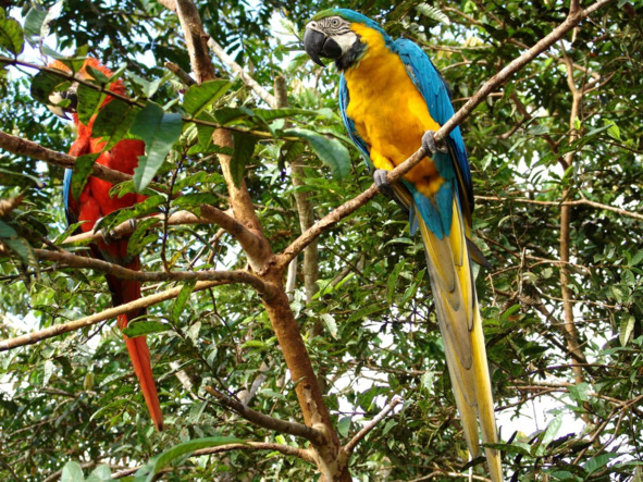 Смеясь и улыбаясь, Миниуа рассказывает забавную историю. Однажды он пошел на охоту с духовой трубкой, чтобы настрелять обезьян. Он увидел дерево, на верхушке которого резвилась целая стая обезьян. Но почти сразу же заметил рядом и ягуара. Не испытывая судьбу, он быстро залез на дерево с обезьянами. Однако ягуар стоял под этим деревом и никуда не собирался уходить. Тогда Миниуа, пытаясь отогнать хищника, попробовал тыкать его сверху духовой трубкой. Ничего не помогало, зверь продолжал находиться у подножия дерева. Начало смеркаться. Миниуа ничего не оставалось, как соорудить на дереве небольшой настил и провести на нем всю ночь. Наутро, не увидев ягуара, он быстро спустился с дерева и без добычи, позабыв об охоте, быстро побежал домой.
