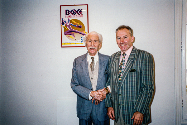Почетный президент Французской федерации бокса сават граф Пьер Барузи и президент Международной федерации сават Мишель Роже (1992 г.)