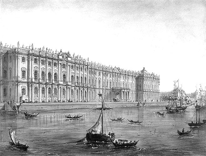 И. И. Шарлемань. Зимний дворец со стороны Невы. 1853 г.