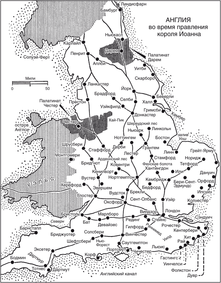 Приход Иоанна в мир привлек к себе мало внимания за пределами спальни его матери, королевы Элеоноры (Алиеноры). Будучи четвертым сыном Генриха II, на трон которого уже претендовали три его весьма энергичных старших брата[1], он, казалось, был обречен на жизнь в сравнительном забвении и не мог рассчитывать на титул выше графского. И в течение тридцати лет Иоанн действительно пребывал в забвении, оставаясь незамеченным в тени своего отца, величайшего правителя, которого когда-либо видела Англия, и старших братьев – страстных, очаровательных, непоседливых, вечно пререкающихся ярких личностей, совершенно затмивших своего младшего брата. Когда наконец после тридцати двух лет забвения он взошел на престол, вся Европа еще отлично помнила Ричарда, его брата, в сравнении с которым Иоанн выглядел весьма мрачной фигурой. В век, когда высшим достоинством мужчины считалось умение воевать, кто мог сравниться с Ричардом Львиное Сердце?