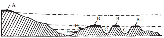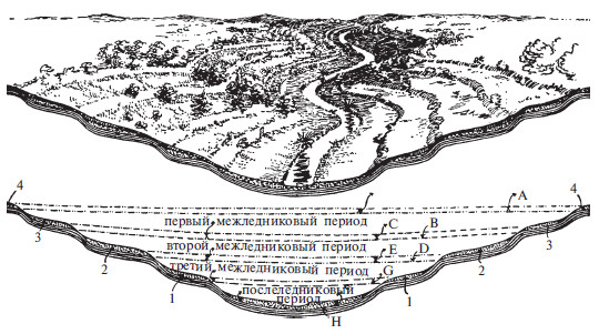 Ложе А на рис. 3 – доледниковое. В первый ледниковый период, в конце эпохи плиоцена, едва ли вода стояла в реках высоко, поскольку они были заперты во льдах.