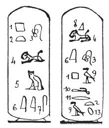 Работа, проделанная де Саси и Юнгом, подтвердила, что греческие имена собственные должны быть написаны алфавитными египетскими знаками. На этом фундаменте он построил свои открытия, которые начиная с 1821 года следовали одно за другим с удивительной быстротой (илл. 1).
