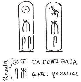 Французская экспедиция, которую Наполеон вел в долину Нила, имела, помимо военной, и другую цель – выяснение проблемы письменности и, как следствие, цивилизации фараонов. Наполеона сопровождали несколько ученых. Судьба благоволила им. В августе 1799 года капитан артиллерии Бруссар извлек из земли, рядом с земляными укреплениями современного форта Розетта, базальтовую плиту с текстом на трех языках. Нижнюю часть плиты покрывала надпись на греческом языке, она излагала указ, изданный Птолемеем V Эпифаном в 196 году до н. э. Греческая надпись также гласила, что этот же текст дан в двух верхних надписях, одна из которых, записанная иероглифами, называлась «священными буквами» (γράμματα ιερά), а другая, образованная линейными знаками, называлась εγχωρία γράμματα – «местные» или «народные» буквы (демотическое письмо). Эти последние начертания были похожи на те, что были изображены на нескольких известных папирусах (илл. 2).