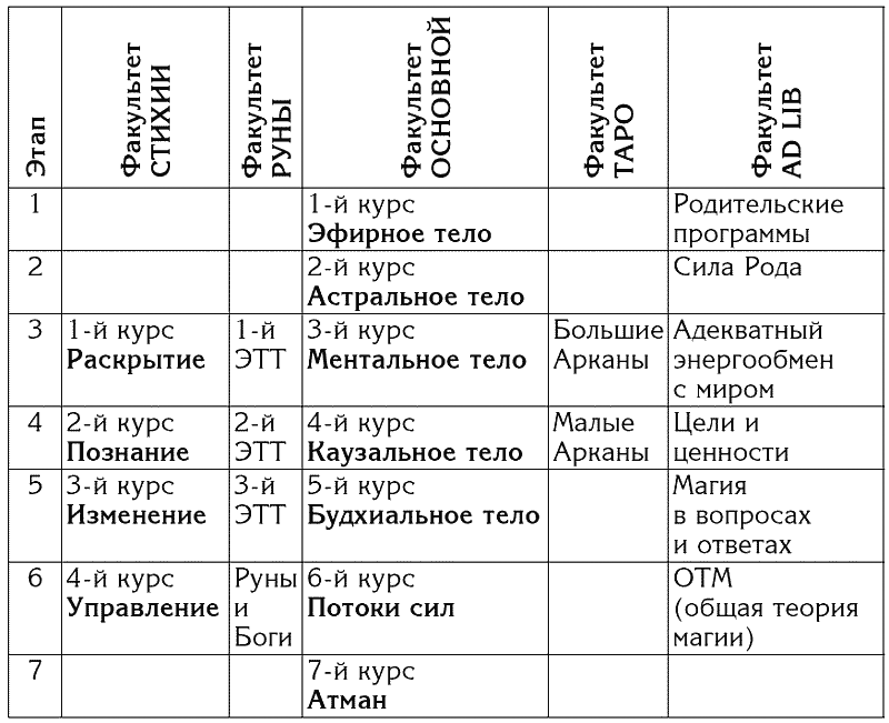 Основной факультетПРОГРАММА ПОСЛЕДОВАТЕЛЬНОГО ОСВОБОЖДЕНИЯ СОЗНАНИЯНа данном факультете идёт последовательное развитие сознания человека. В ходе обучения высвобождаются скрытые энергетические резервы для последующей распаковки информационных пластов психики. Основа работы – это семеричная структура сознания, которая включает в себя физическое тело и 6 тонких тел, расположенных в строгом иерархическом порядке. Каждое тонкое тело выполняет определённую задачу.