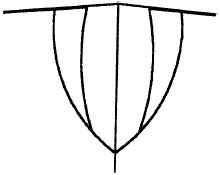 При ПХ и ЗХ равных 0 вертикали, проведенные из центров эллипсов, совпадают, или ОО1 = 0. Ширина переднего и заднего полотнищ у таких фигур одинакова.