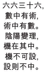 Шесть умножить на шесть будет тридцать шесть. В расчете кроется искусность, а в искусности – расчет. Инь и ян сменяют друг друга, на том и стоит военная хитрость. Всех уловок заранее не предугадать, без гибкости нет победы.