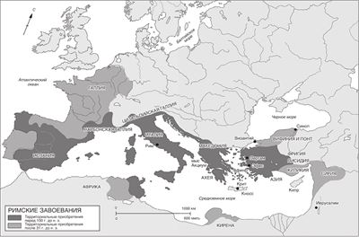 Повествование о распространении республиканского режима правления до его пределов целесообразно закончить перед тем, как вывести заключение о том, как такое достижение в конечном счете привело к гибели республики. Заальпийская Галлия (Южная Франция) в 121 году до н. э. числилась римской провинцией, но (как и всей Северной Италии) ей продолжали досаждать кельтские племена, время от времени совершавшие грабительские набеги. Долине реки По присвоили статус провинции одновременно с Цизальпийской Галлией в 89 году до н. э., и без малого 40 лет спустя (в 51 году до н. э.) остальная часть Галлии (грубо Северная Франция и Бельгия) покорилась римлянам. После этого с кельтской угрозой удалось покончить навсегда. Между тем на востоке продолжались захваты новых территорий. Последний царь Пергама передал свое царство в распоряжение Рима в 133 году до н. э. За Пергамом в начале I века до н. э. последовало приобретение римлянами Киликии, и потом серия войн с правителем Понтийского царства на Черном море Митридатом. Итогом стало перекраивание границ государств Ближнего Востока. Рим получил побережье, простиравшееся от Египта до Черного моря, причем расположенное между зависимыми княжествами или провинциями (одну из которых назвали «Азией»). В 58 году до н. э. аннексии подвергся остров Кипр.