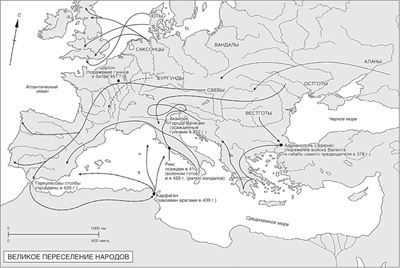 В начале IV столетия германские народы заселили всю полосу вдоль границы империи от Рейна до Черного моря. Тех, что жили ближе других к областям римской экспансии, начавшейся в I столетии, в значительной степени притягивал опыт развития империи. Римляне все еще могли смотреть на них как на варваров, но уже появились варвары с новыми моделями организации общества, новыми техническими приемами и новым оружием, позаимствованным за последние 400 лет развития посредством торговли и культурного влияния вдоль римских границ. Многие из этих варваров должны были к тому же помнить, что на протяжении многих веков они страдали от злонамеренной военной агрессии Рима. Самая мощная концентрация таких варваров в тот момент оказалась как раз на юге. Они принадлежали к народностям остготов и вестготов, выжидавшим подходящего момента на противоположном берегу Дуная. Некоторые из них уже принадлежали к христианам, хотя и арианского уклона. Вместе с вандалами, бургундцами и лангобардами они составили восточную германскую группу племен. К северу обитали западные германцы: франки, аламанны, саксы, фризы и тюрингцы. Они вступят в дело на втором этапе Vo¨lkerwanderung (Великого переселения народов) IV и V столетий.