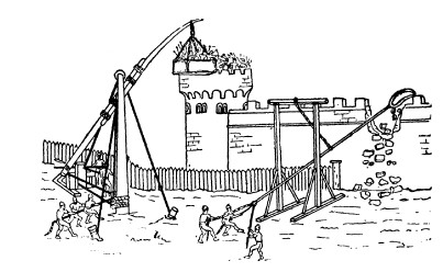 Инженер Александра Македонского Диад сконструировал крюк на длинном рычаге для разрушения стен. Другим его изобретением был теленон – ящик, в котором размещалось несколько человек. Теленон подвешивался на тросе, который, в свою очередь, был закреплен на ригеле, укрепленном на вертикальной мачте, и поднимался несколькими воинами. С помощью этого приспособления преодолевали высокие стены и любые препятствия в крепости.