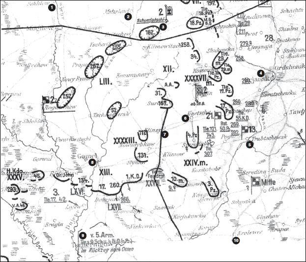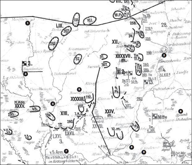 51 AGp Center, KTB, August 1941; and Second Pz Gp, KTB, 22 August 1941. Это изменение вступило в силу 22 августа. К этому времени танковая группа Гудериана объединилась с тремя армейскими корпусами 4-й армии.