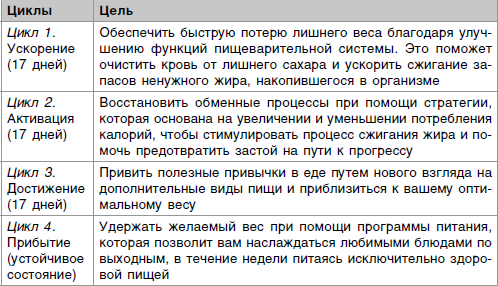 Поверьте, вам настолько понравится быстрое исчезновение нескольких килограммов, что вы решите продолжить начатый путь. После первых 17 дней последуют новые 17 дней, а за ними еще 17 дней – три полных цикла и закрепляющий цикл, во время которого вы станете есть все, что пожелаете, особенно во время уик-эндов. Итак, знакомьтесь с обзором: