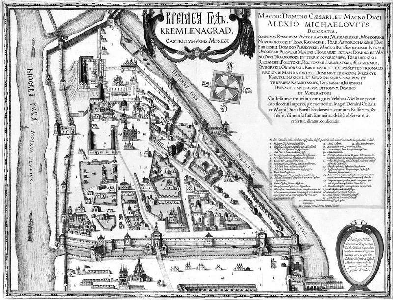 При сыне Ивана III Василии строительство в Кремле не прекращалось: с восточной стороны вдоль стен под руководством Алевиза-фрязина в 1508 г. начали рыть огромный ров: «Тоя же весны князь великий велел вкруг града Москвы ров делать камением и кирпичем и пруды чинити вкруг града Алевизу фрязину». Ров этот был глубиной около 8 м и шириной поверху 34 м; его наполняла вода из реки Неглинной. В 1505–1508 гг. итальянский архитектор Алевиз Новый построил большой Архангельский собор вместо старого и небольшого времен Ивана Калиты. Зодчий использовал традиционные формы, но декорировал их совершенно необычно: так, закомары он заполнил изящными резными белокаменными раковинами, которые с тех пор полюбились русским строителям, а снаружи опоясал собор открытой галереей на полуколоннах тосканского ордера и главный западный вход украсил перспективным резным порталом. Этому же архитектору принадлежит и монументальный собор кремлевского Вознесенского девичьего монастыря, а также три церкви – Николы Гостунского, построенная в 1506 г. на Ивановской площади, Рождества Иоанна Предтечи у Боровицких ворот – в 1509 г. и Рождества Богородицы в Сенях – в 1514 г.