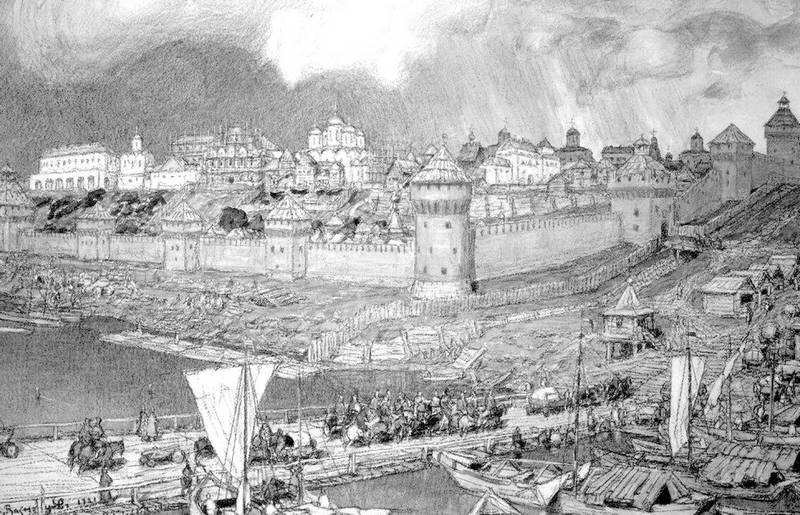 Иван III решил создать для себя и своего двора соответствующую новому положению великолепную резиденцию, которая свидетельствовала бы о его величии, могуществе и богатстве. Так, начиная с 1485 г., на протяжении 10 лет, за исключением перерыва, вызванного огромным пожаром 1493 г., велось возведение крепостных стен Кремля. Есть основания считать, что общий план перестройки или, вернее, постройки Кремля был продуман и составлен заранее, и можно предположить, что Аристотель Фиораванти был одним из авторов этого плана.