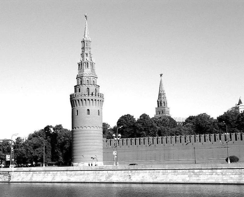 В Московском Кремле две такие изящные и стройные башни: эта и Водовзводная, обе отмечающие края приречной стороны крепости. Называлась башня еще Москворецкой – по близости к одноименному мосту, а Беклемишевской ее назвали потому, что рядом, за Кремлевской стеной, находился двор бояр Беклемишевых.