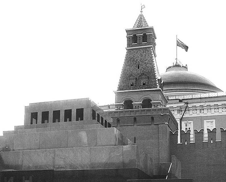 По обе стороны от башни в Кремлевскую стену замурованы урны с прахом известных деятелей Советского государства и мирового коммунизма.
