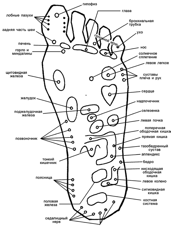 Схема связи левой ступни с органами и системами (по Л. Г. Пучко, 2002)