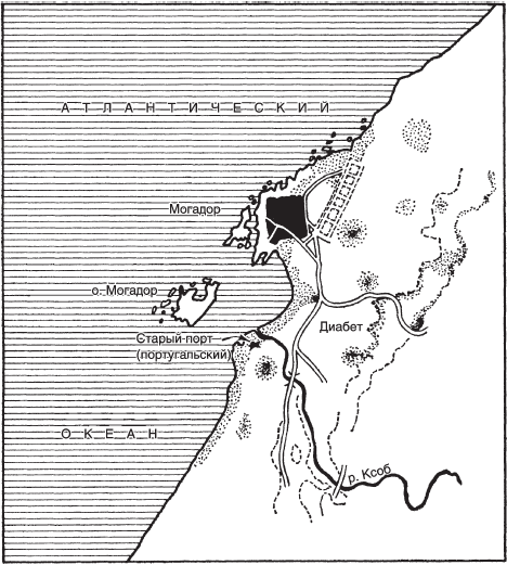 Необходимо, однако, отметить, что и здесь береговая линия изменилась с древних времен. Могадор прежде был островом, а устье реки Ксоб не изгибалось к заливу. Подобное положение острова, находившегося столь близко к материку, могло привлечь финикийцев.