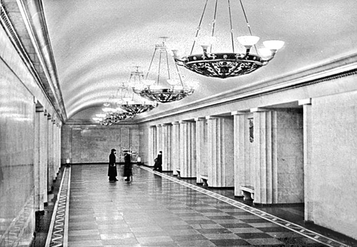 Следующая станция, «Пушкинская», из-за проблем при строительстве наклонного хода приняла первых пассажиров только 30 апреля 1956 г.