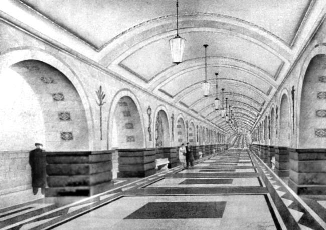 Проект станции «Витебская» («Пушкинская») работы И.М. Чайко. 1946 г.
