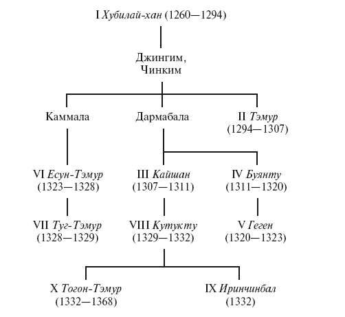 Примечание. Все монгольские правители Китая имели китайские тронные имена, которые здесь не указаны.