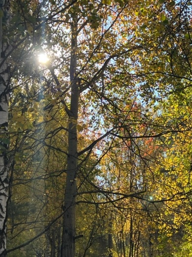 Светит мягко осеннее солнце, а я сижу на скамейке наивно.