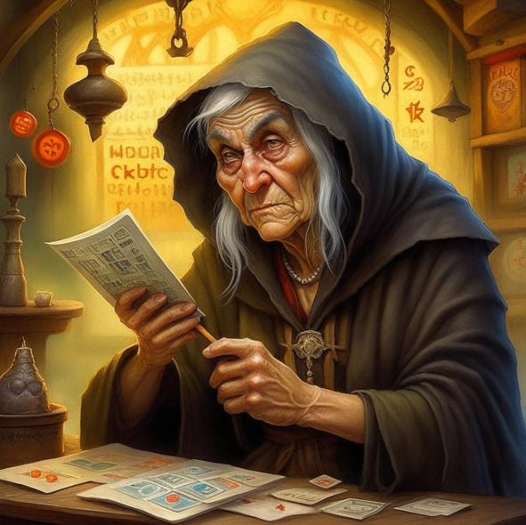 Пошла Яга волшебный, удачный, лотерейный билет покупать. Пёс проводил её до ближайшего киоска, пожелал удачи и по своим делам отправился.