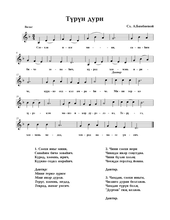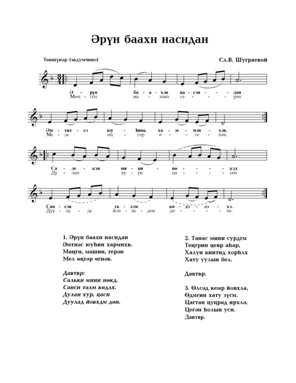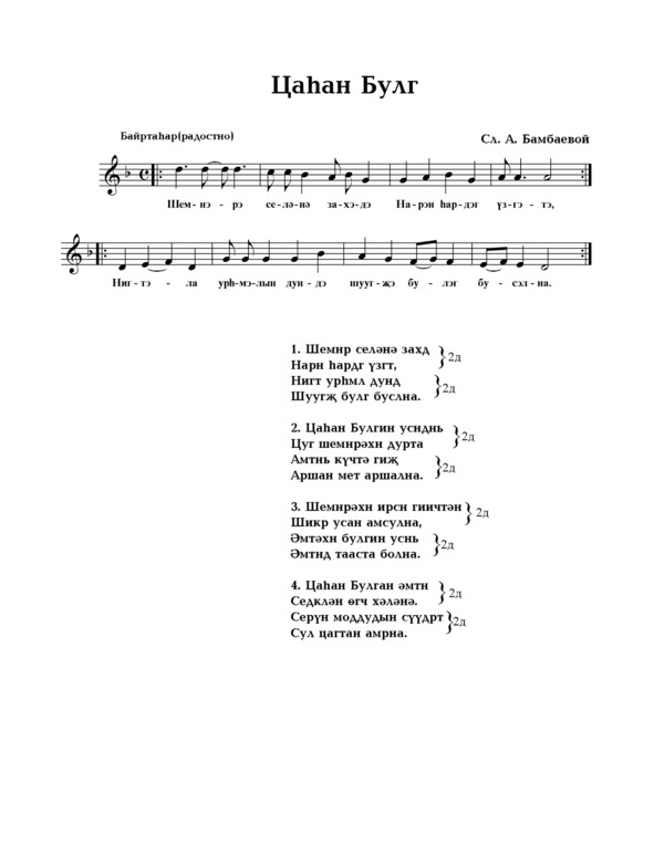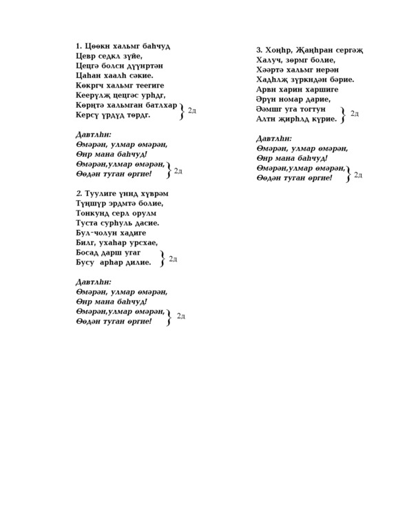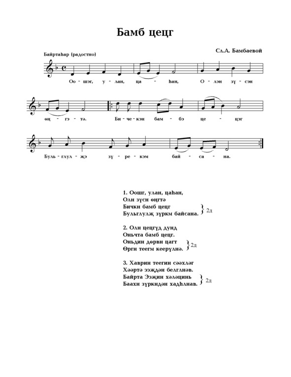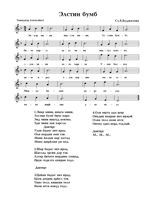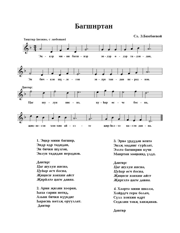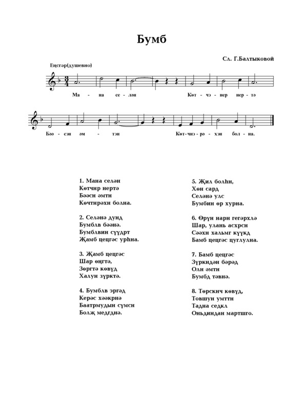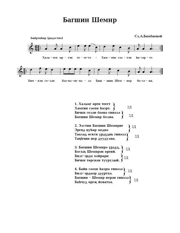 1. Багшин Шемнр слова А. Бамбаевой …………………..3