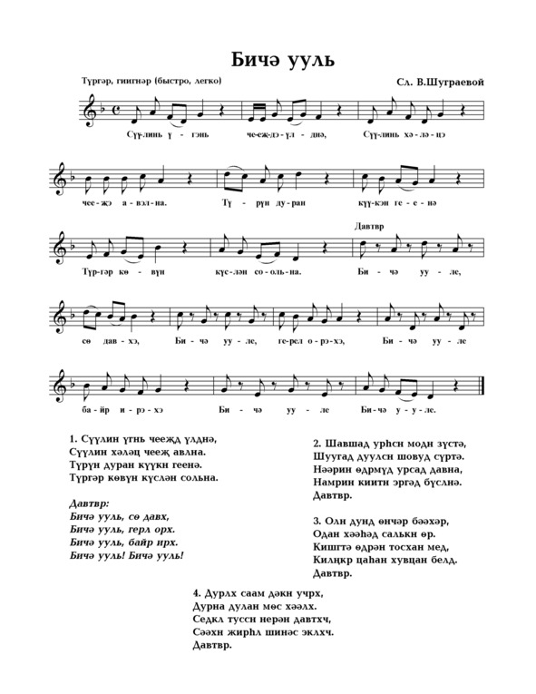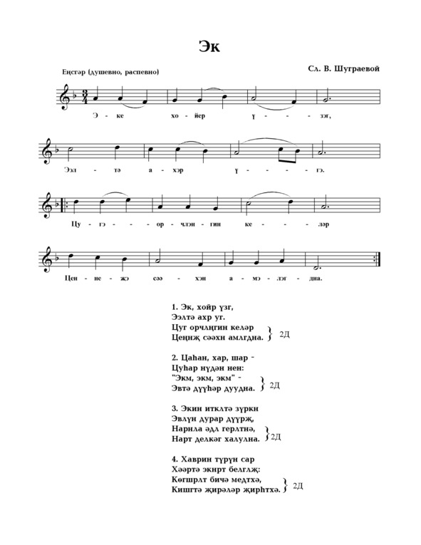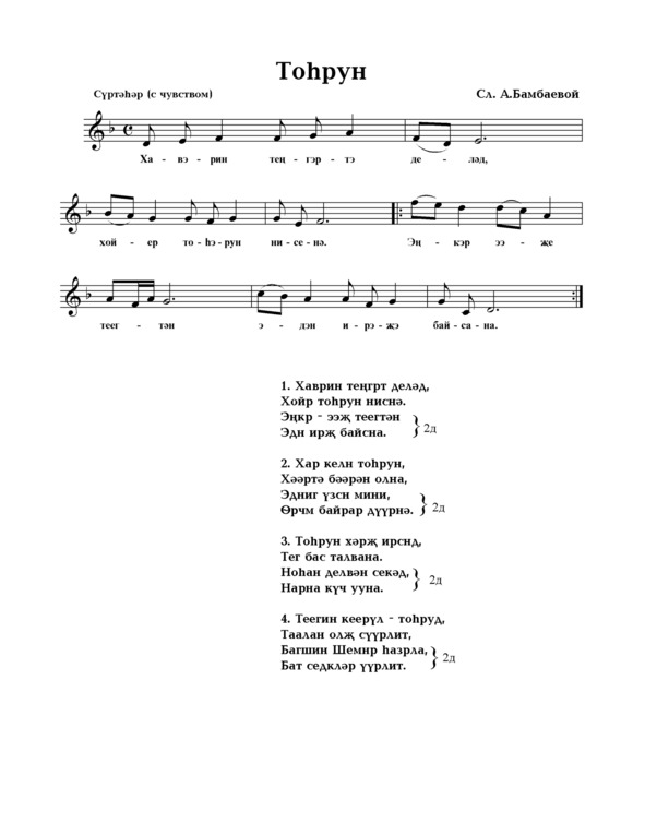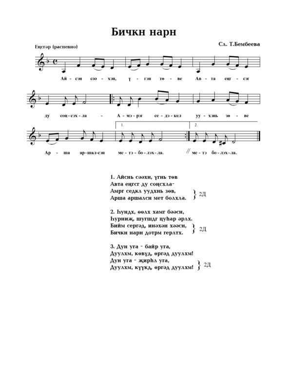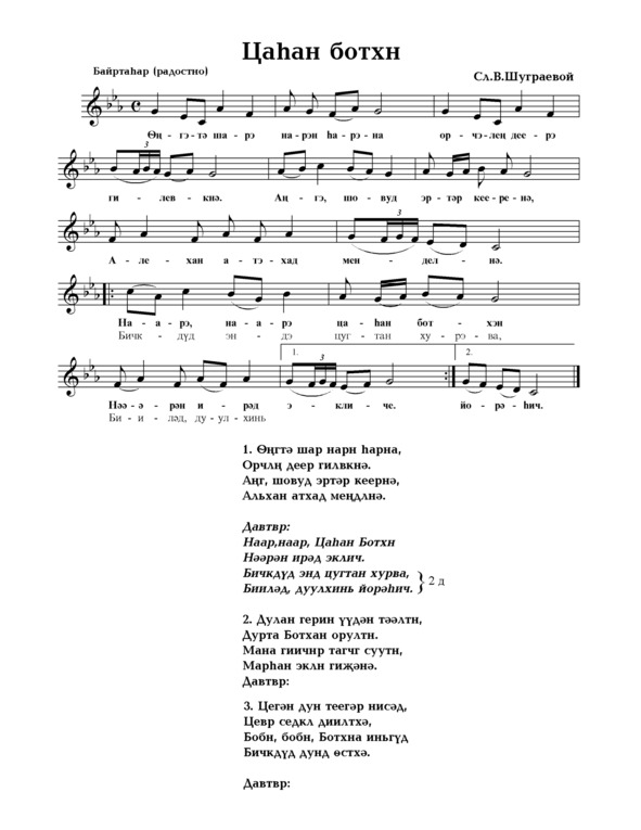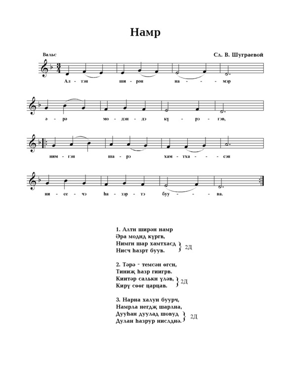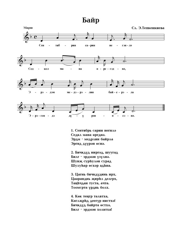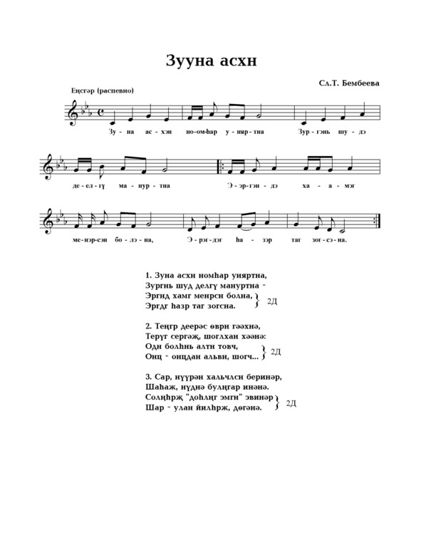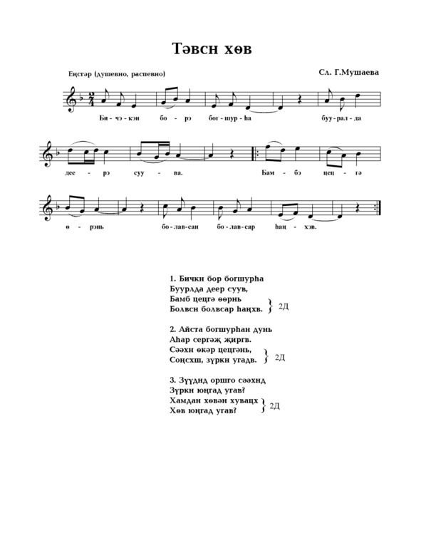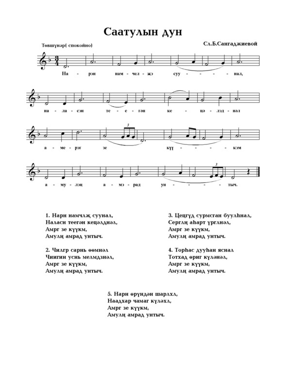 1. Багшин Шемнр слова А. Бамбаевой …………………..3
