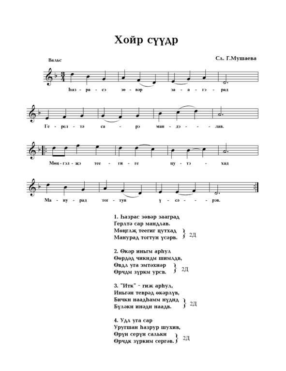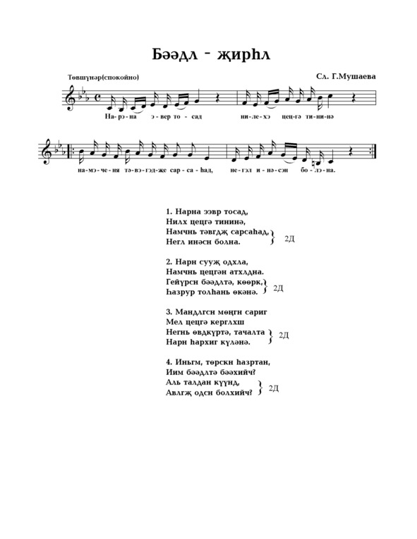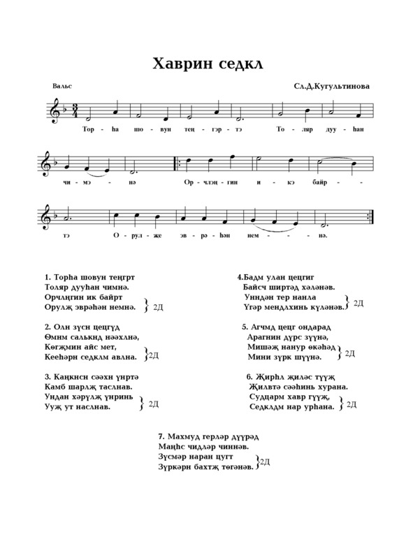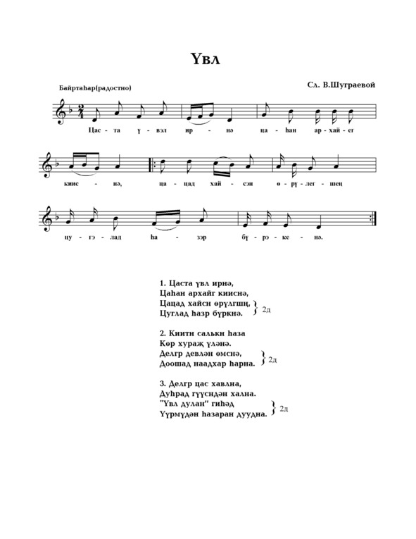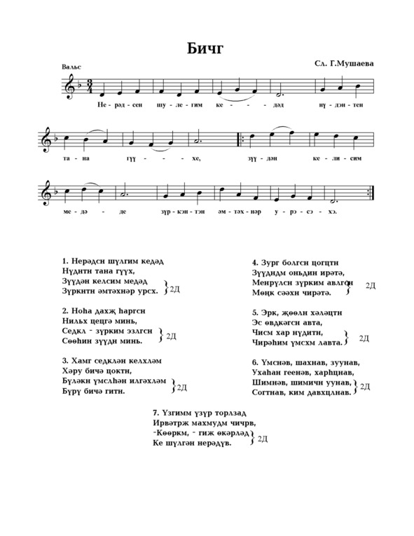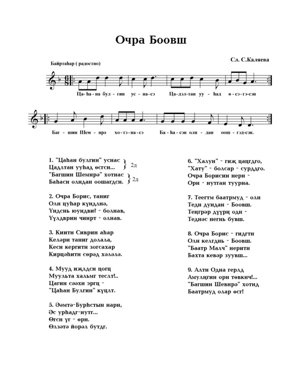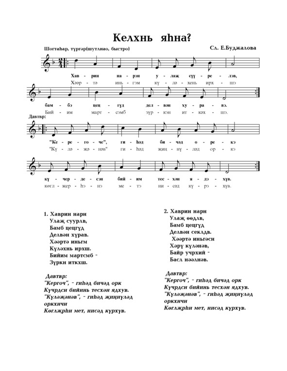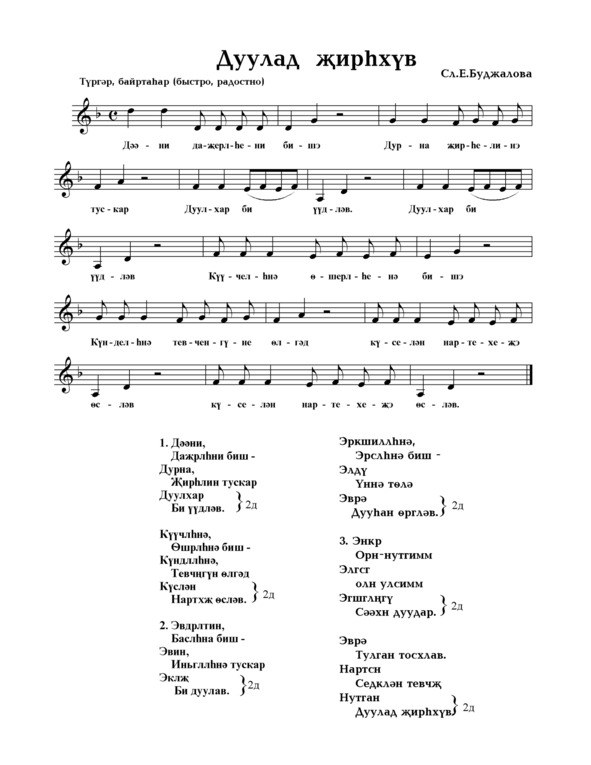 7. Дуулад җирһхув слова Е. Буджалова ……………………9