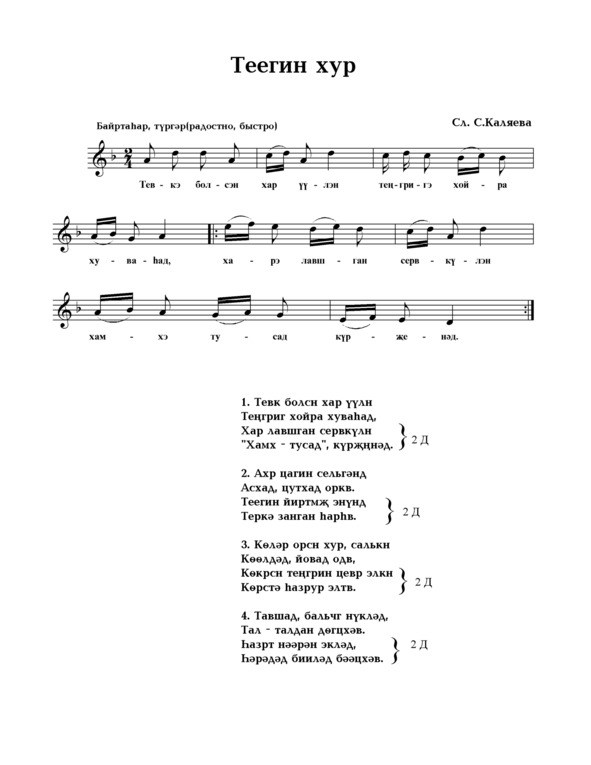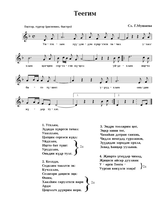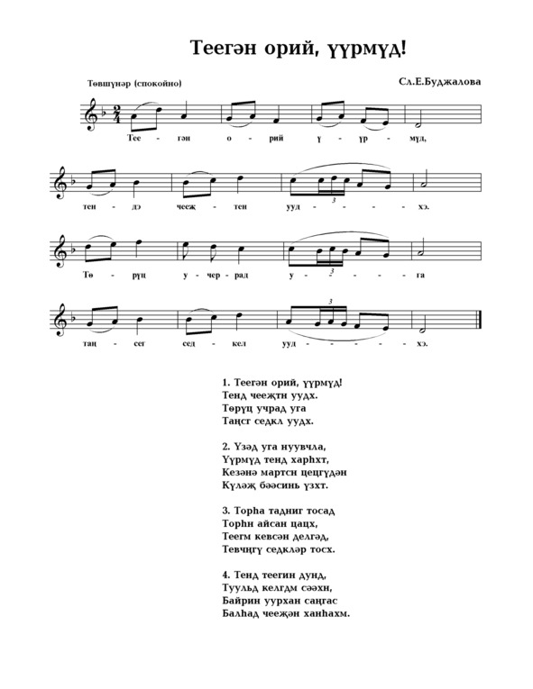 13. Теегән орий, үүрмүд! Слова Е. Буджалова …..…….15