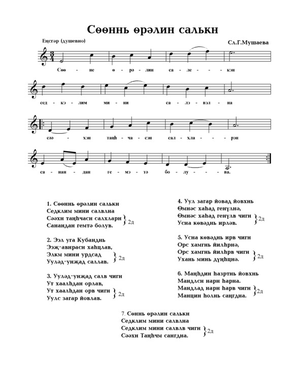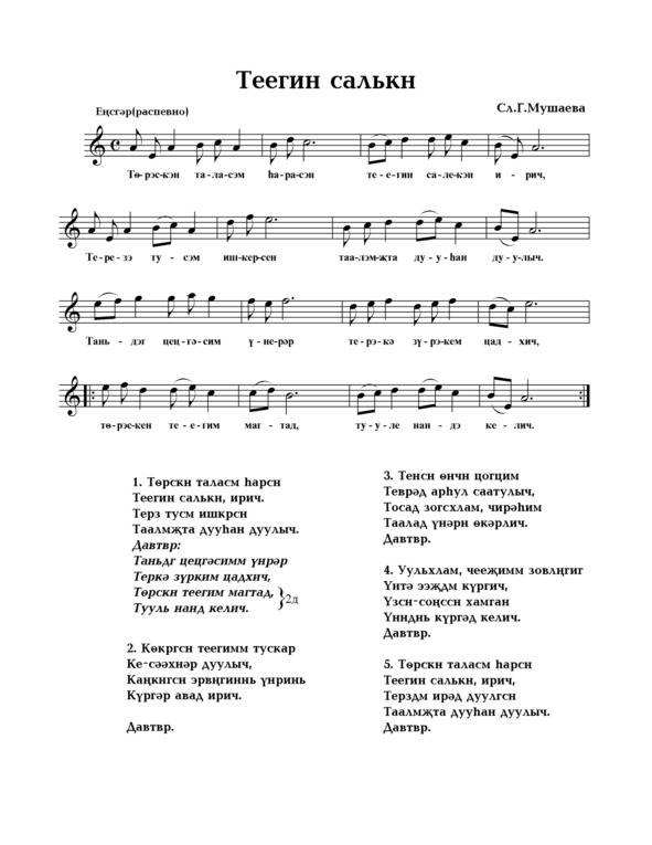 5. Теегин салькн слова Г. Мушаева ………………………..7