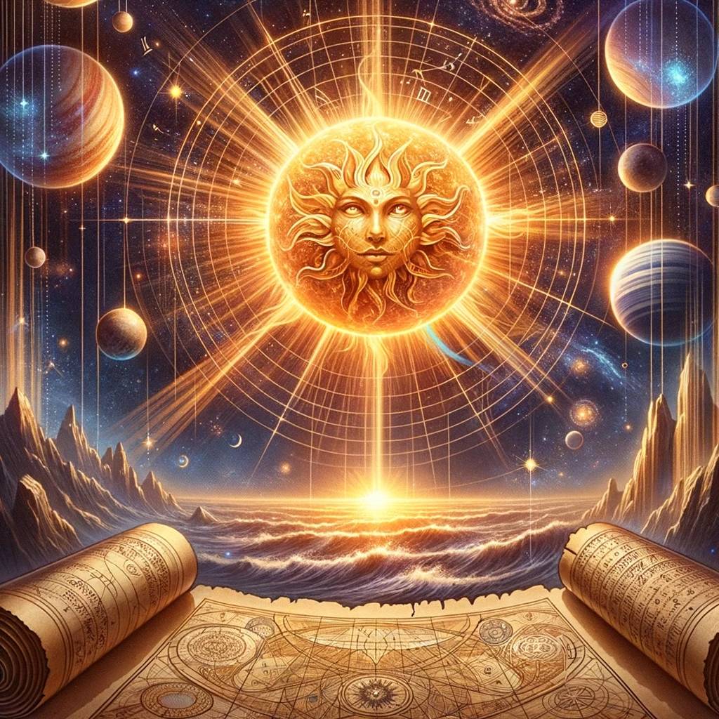 Сурья, блестящий и величественный, является основным светилом в ведической астрологии и символизирует сознание, царскую власть и отца. Родившийся из прародителей, Кашьяпы и Адити, Сурья считается королем небес и богом правды. Его божественный свет является источником жизни, просветления и исцеления.