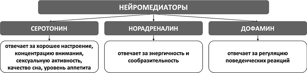 Предметом веры многих врачей-психиатров (а именно сторонников широко известной теории химического дисбаланса) является так называемая «святая троица» нейромедиаторов – серотонин, норадреналин (норэпинефрин) и дофамин.