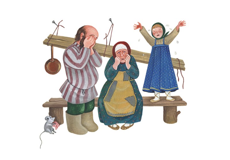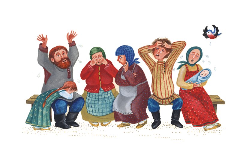 С того горя со великого старик стал плакать, старуха – рыдать, внучка – криком кричать.