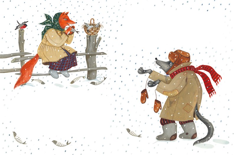 Проглотил Волк рыбку и стал Лису просить, чтобы она научила его, как ему самому такой рыбы наловить.